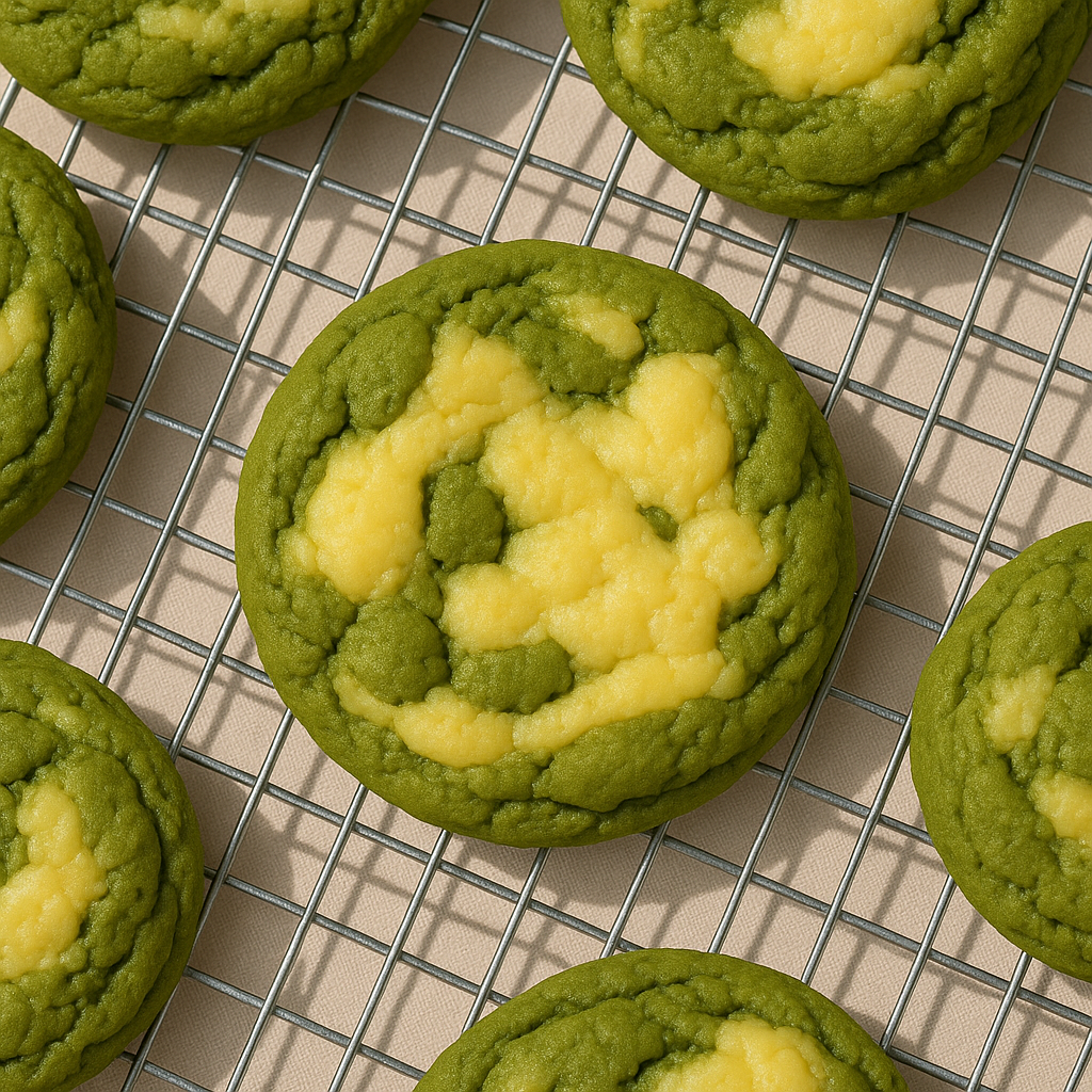 Cookies lembut dengan sentuhanrasa matcha yang kaya, dipadu denganisian fla manis yang creamy.